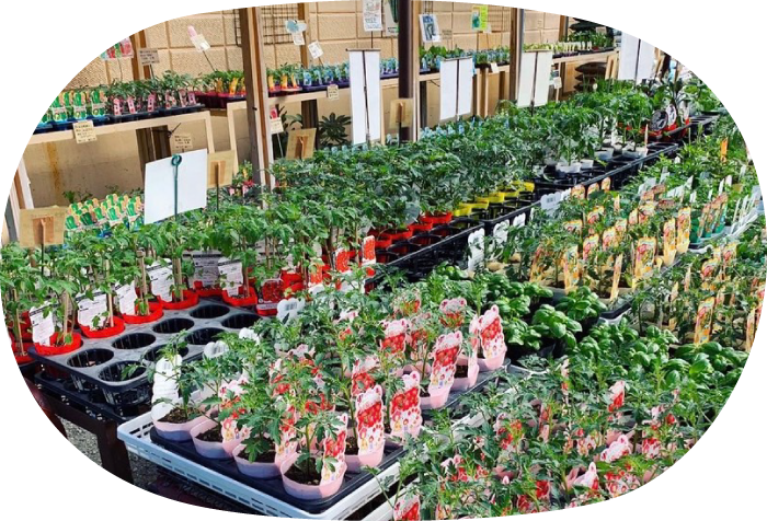 また季節商品の花・野菜のタネ、サツマイモのツル、